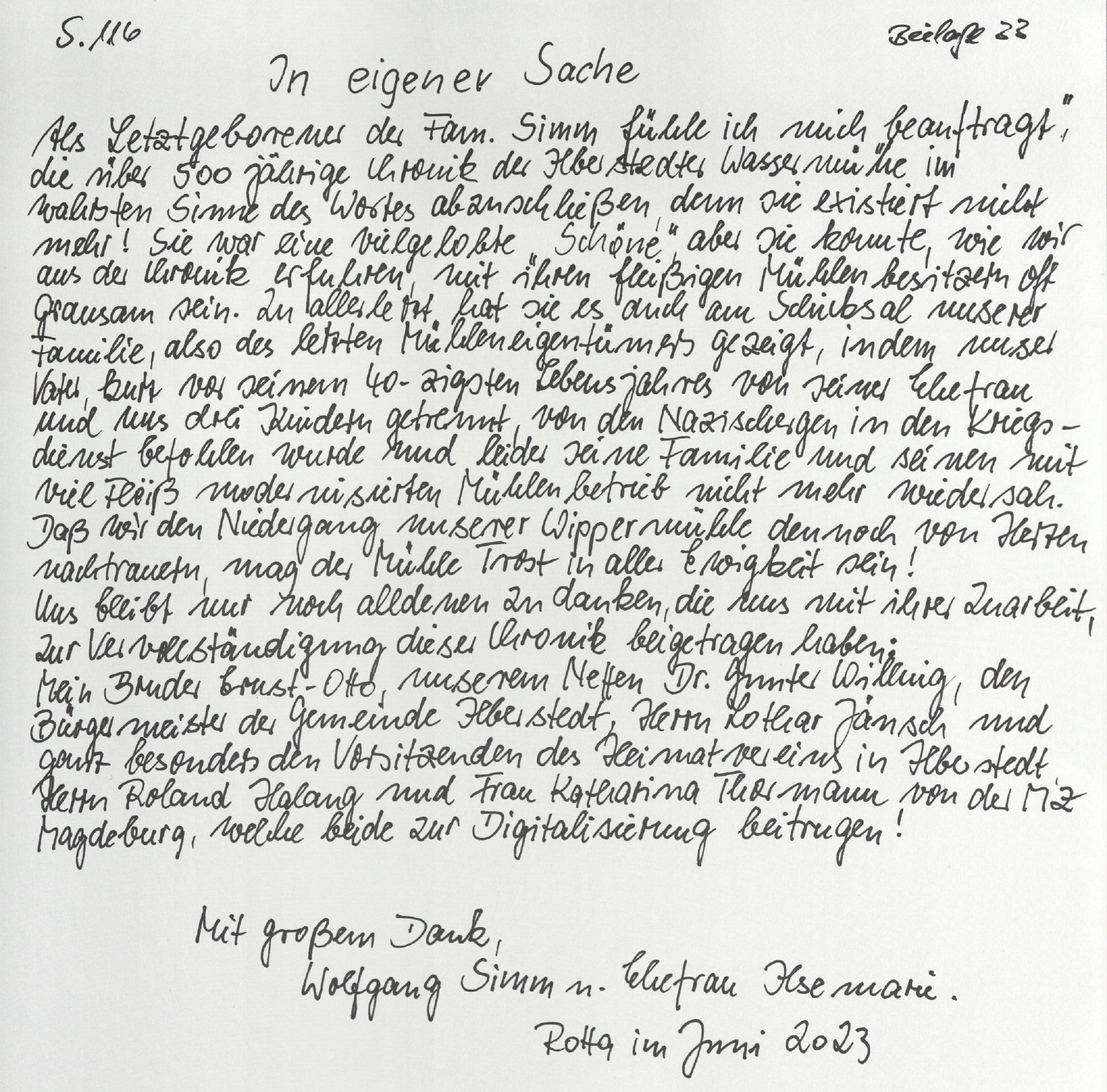 Otto Simm, ehemals Windmüller in Drosa, investierte in die Mühle; durch die Erhöhung der Wasserzufuhr, den Einbau eines leistungsfähigen Motors, des Walzenstuhles und Planrichters u.a.m. erreichte er eine enorme Leistungssteigerung von ca. 4 t Mahlleistung pro Tag bei bester Mehlqualität, genannt „Wipperperle“ zur Versorgung der Bäckereien im Ort und Bernburger Umgebung sowie zur Ausfuhr mit seinem 2-Tonnen-Lieferwagen. Diese Tätigkeit fand sein jähes Ende mit der Einberufung des 40jährigen Müllermeisters zum Wehrdienst 1943 und seinem Ableben in der serbischen Gefangenschaft 1945.
