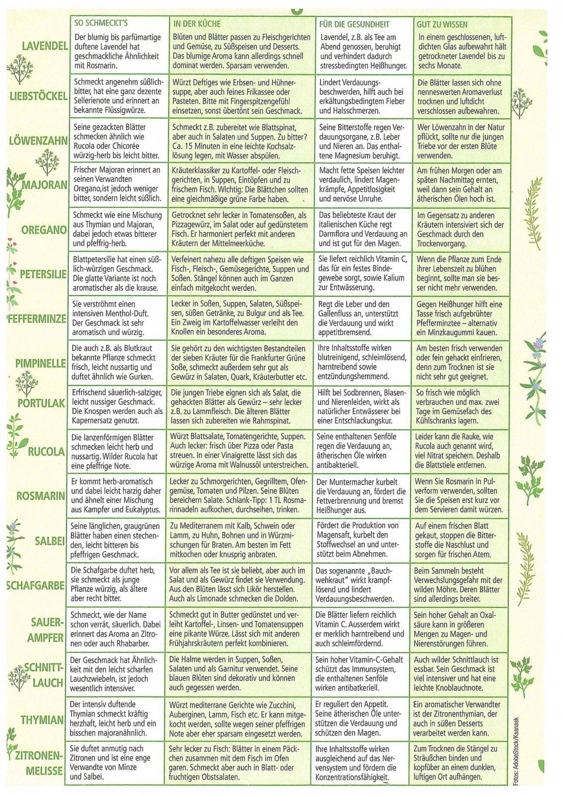 Aus dem Fundus unseres Wissens anbei unsere Übersicht "Mein Kräuterwissen für die leckere, gesunde Küche".