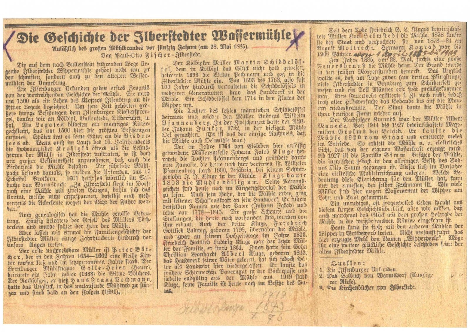 Überblick zum geschichtlichen Verlauf der "Ilberstedter Wippermühle" mit Auszügen aus der erstellten Chronik