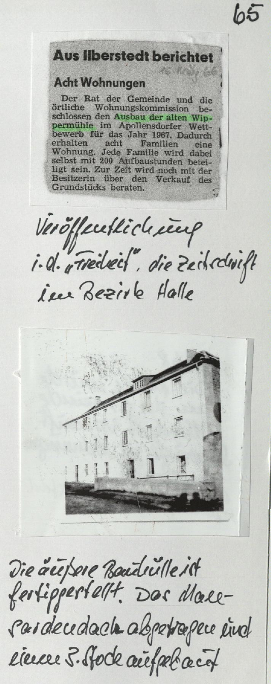 Durch staatliche Bemühungen, den Wohnungsbau zu forcieren, konnte das Mühlenobjekt für diese Zwecke ab 1962 angeboten werden.