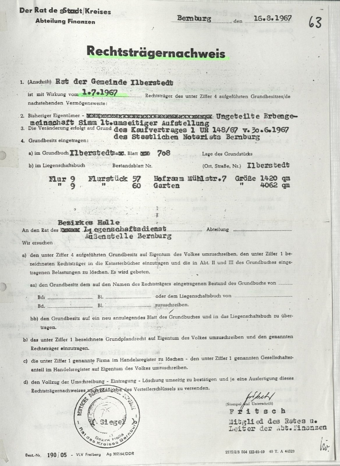 Die Gemeinde Ilberstedt vermag das Objekt wegen zu hoher Belastung nicht zu übernehmen, um es einer zweckmäßigen Nutzung zuzuführen.